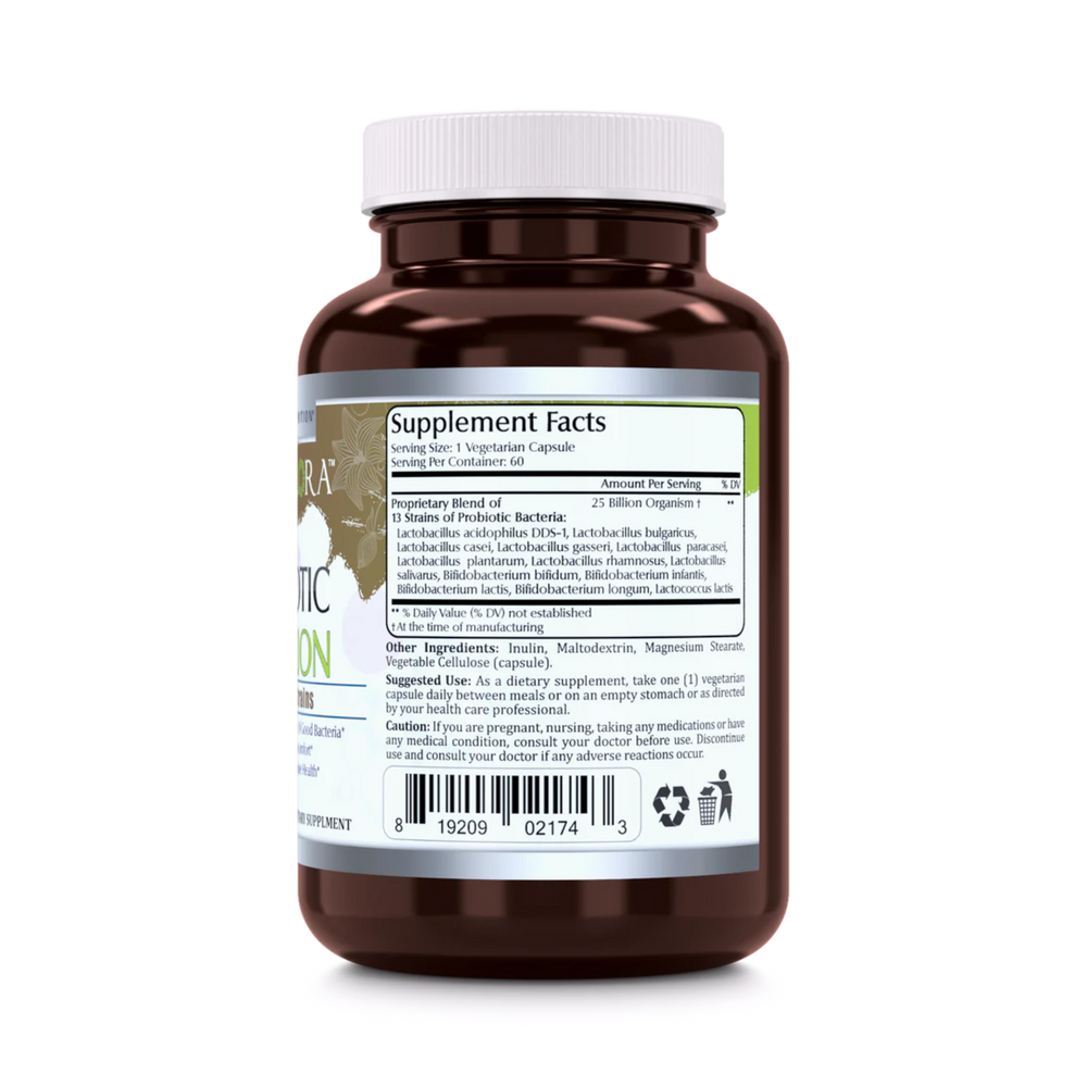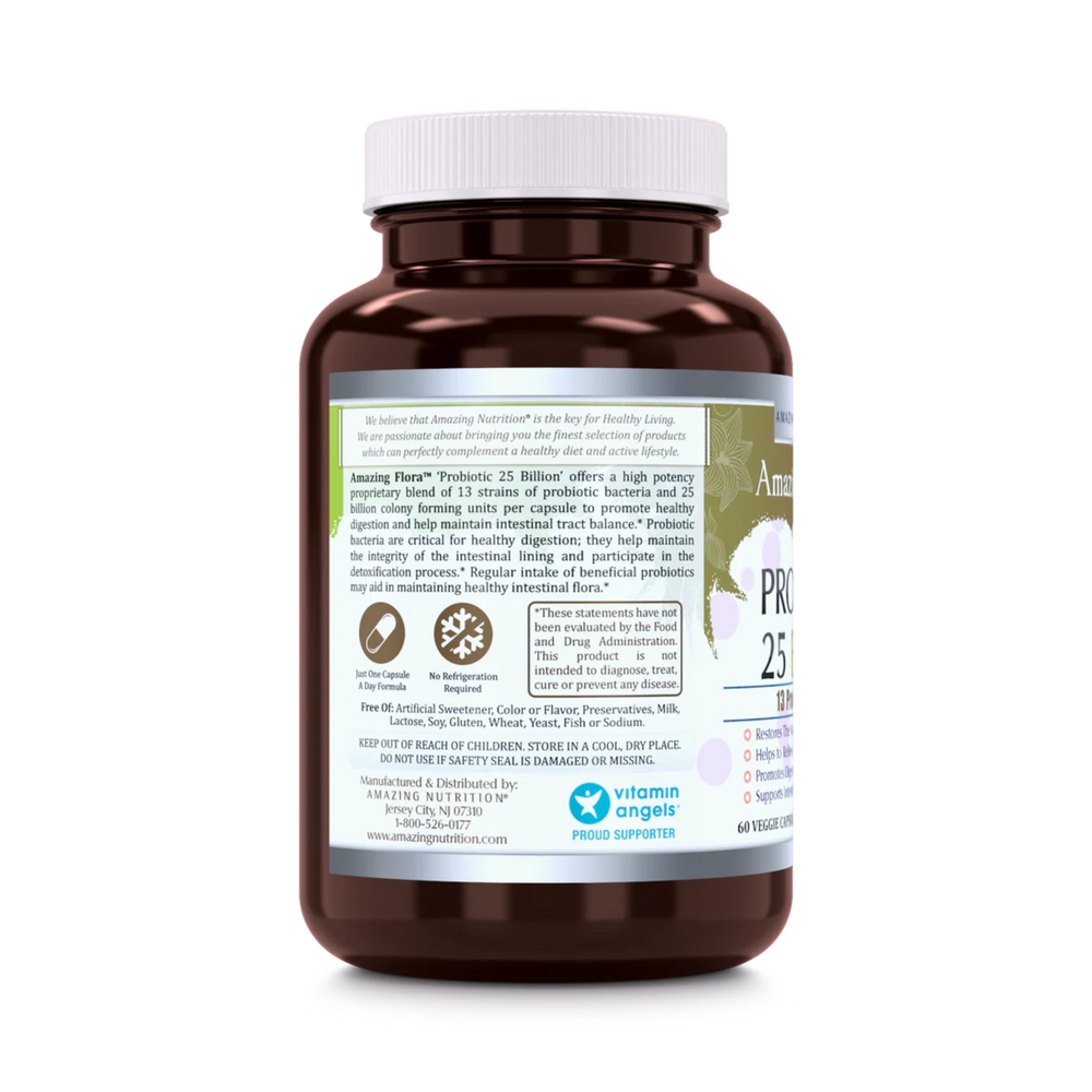 Although your body naturally is home to the acidophilus probiotic and other probiotic strains, levels of these beneficial bacteria can become out of balance, interfering with the proper functioning of your digestive system and your immune system. The good news is that you can increase your body's supply of the best probiotic stains with Amazing Flora Probiotic Supplement 13 stains - 25 Billion colony forming units per capsule.