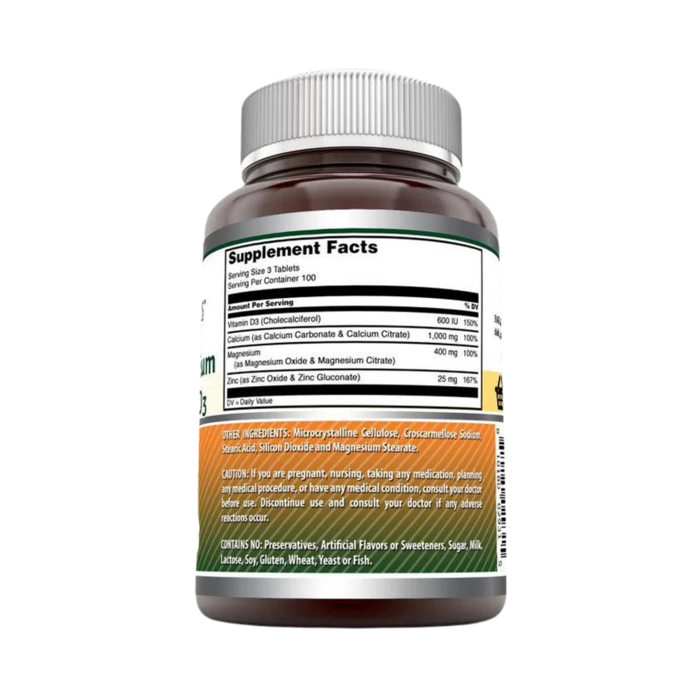 Each 3-tablet serving of Amazing Formulas Calcium Magnesium Zinc + Vitamin D3 contains