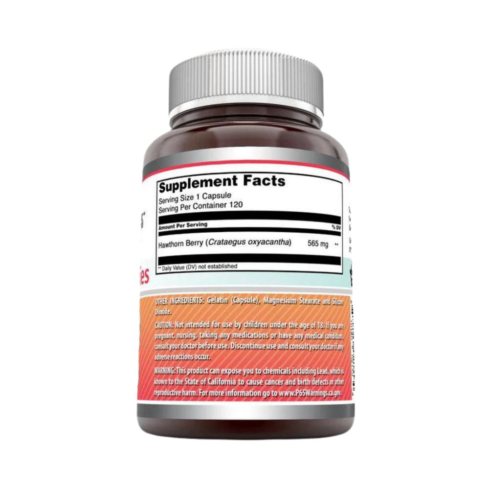 Each capsule of Amazing Formulas Hawthorn Berries Dietary Supplement contains 565 milligrams of hawthorn berry extract. You may take the capsule with a glass of water or open the capsule and prepare the powder as a tea.