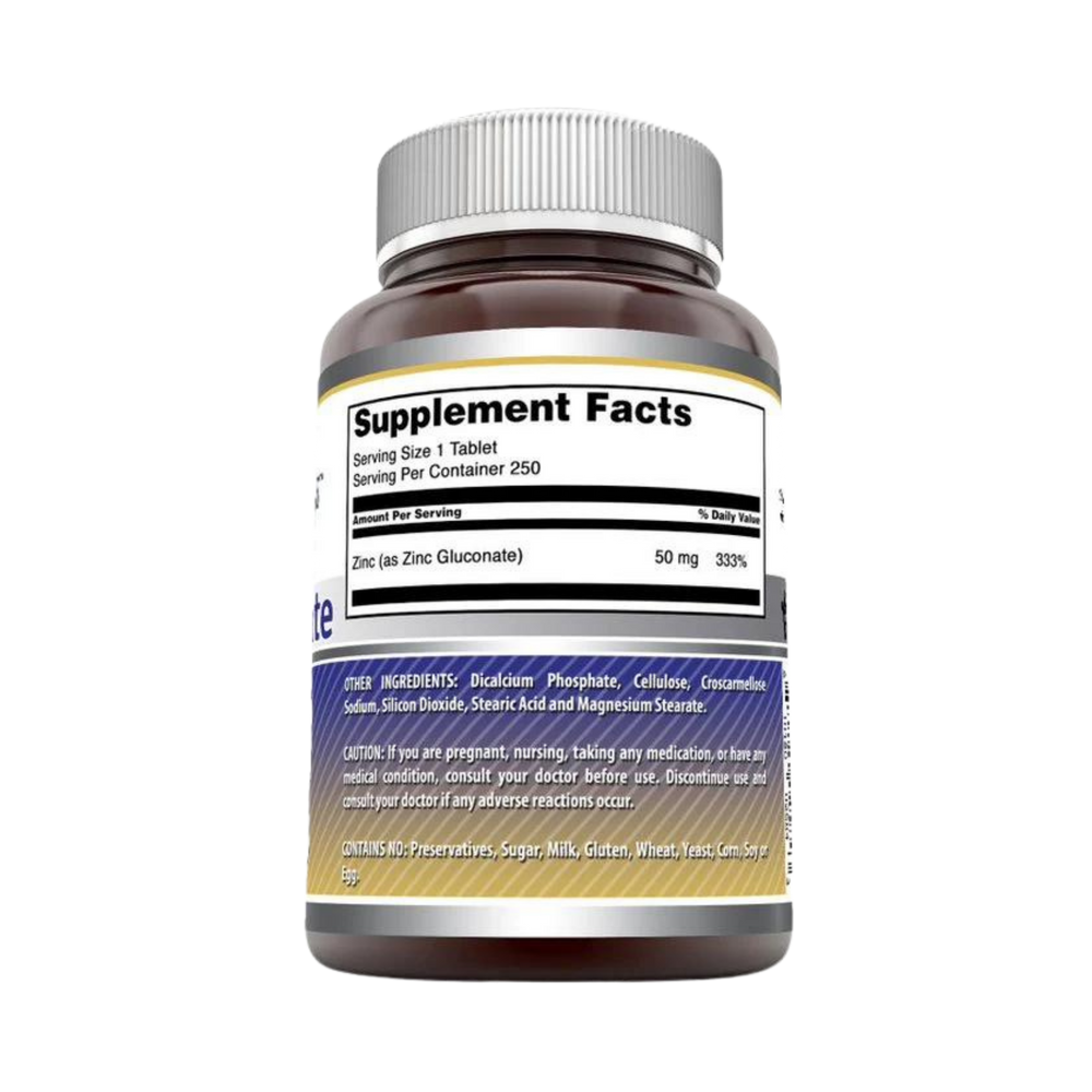 The human body cannot produce zinc on its own and can only obtain the mineral from foods that you eat. Each one of our zinc pills gives you a zinc supplement 50mg dose in the form of zinc gluconate.