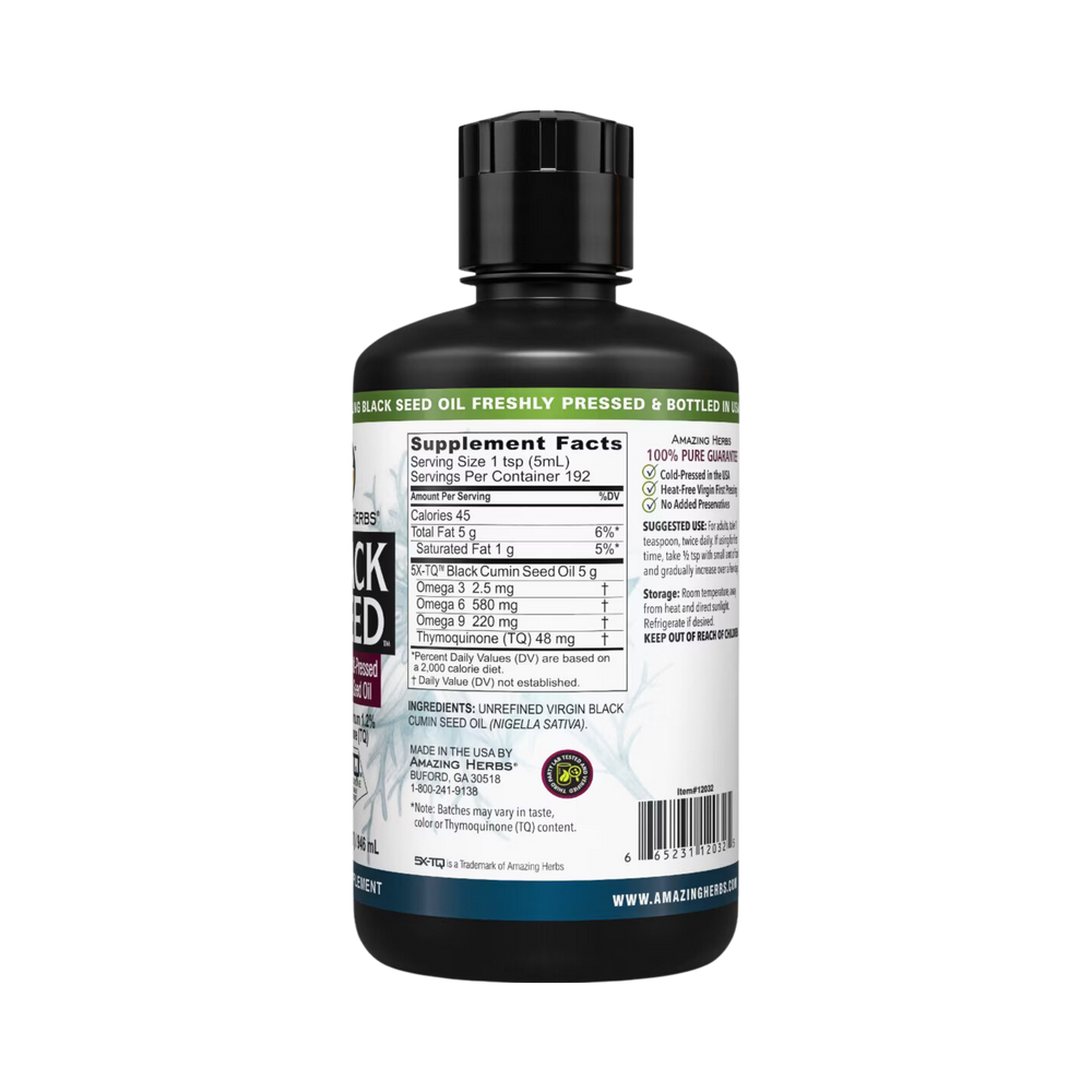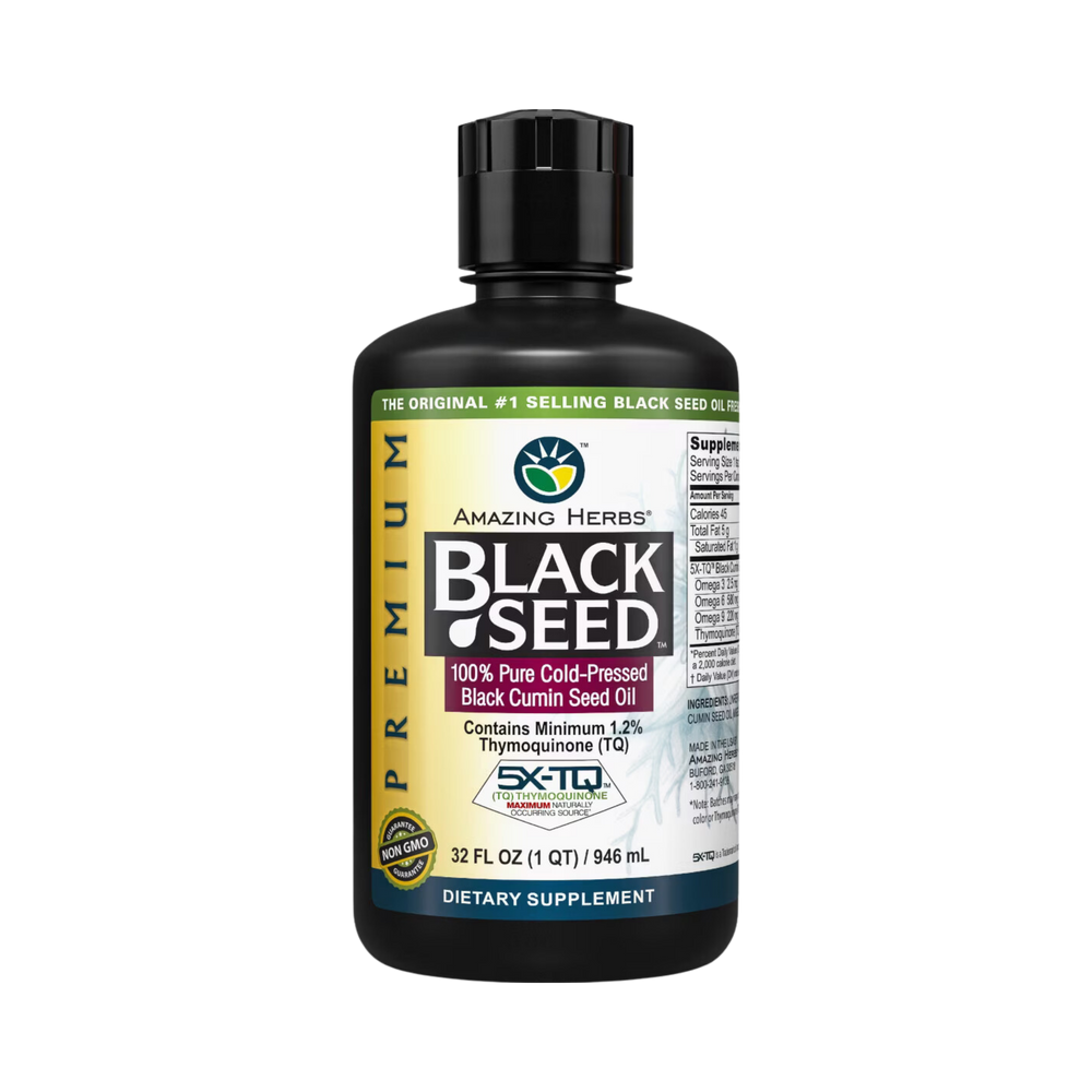 Our PREMIUM 32oz Black Seed Oil packs a high amount of thymoquinone that optimizes health and wellness for an extended period. This Nigella sativa Black Seed Oil is made of high-grade, cold-pressed Turkish black seeds that support vital physiological functions and can improve your quality of life. Some benefits of black seed oil vitamins include strengthening the immune system, assisting with cardiovascular function, promoting digestion, improving respiratory diseases, and much more. Our black seed oil is especially potent due to these additional benefits: