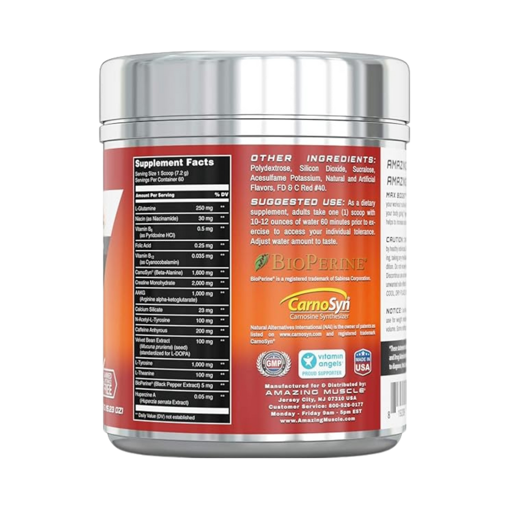 Amazing Muscle, Max Boost Advanced Pre-Workout Formula, Fruit Punch, 60 Servings