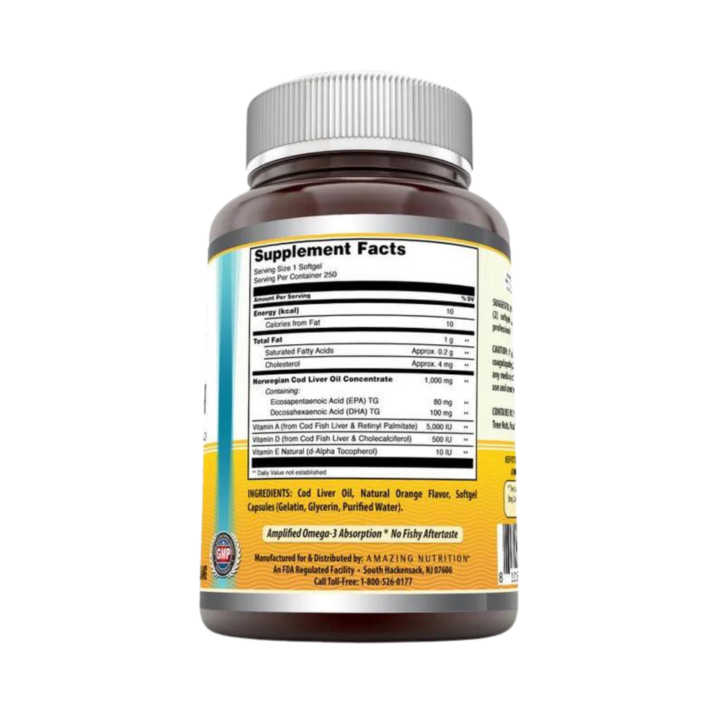 Amazing Omega offers Norwegian Cod Liver Oil dietary supplement in an easy to swallow softgel form. Every softgel contains 1000 mg of pure Norwegian Cod Liver Oil.