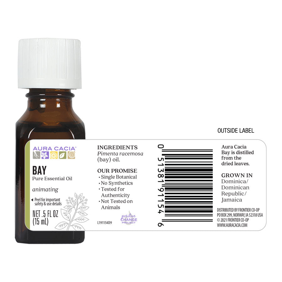The energizing spicy, sweet aromatic essential oil of Bay is antibacterial, antiviral and antifungal, which proves to be the best possible way to soothe senses and enlivens the spirit. AURA CACIA®, Bay Essential Oil is distilled from dried bay leaves.
