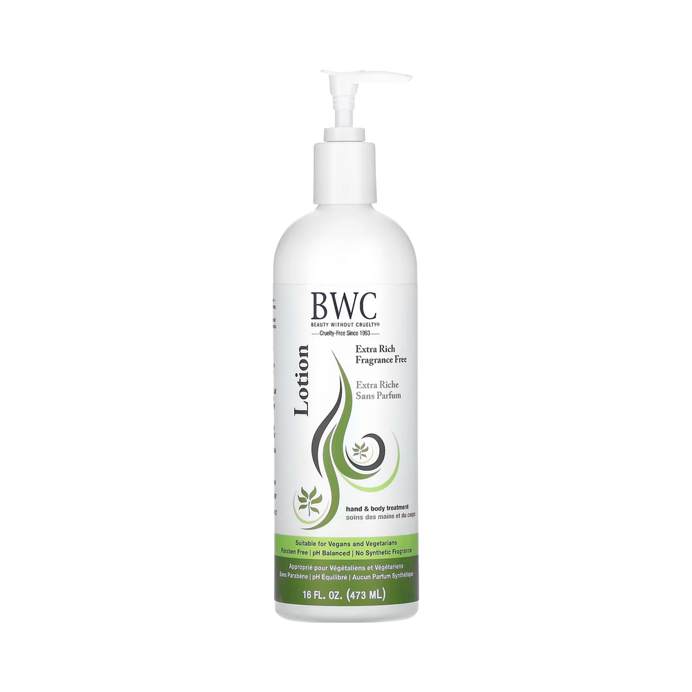 BWC Extra Rich Fragrance Free Hand & Body Lotion deeply moisturizes, softens, and provides extra protection for your skin - the perfect all-over body treatment to counteract extreme dryness. Rich emollients, combined with effective humectants and antioxidants smooth, nourish and replenish your skin. This special formula features arnica, calendula, shea butter, jojoba, and tamanu - the ultimate in advanced skin care.