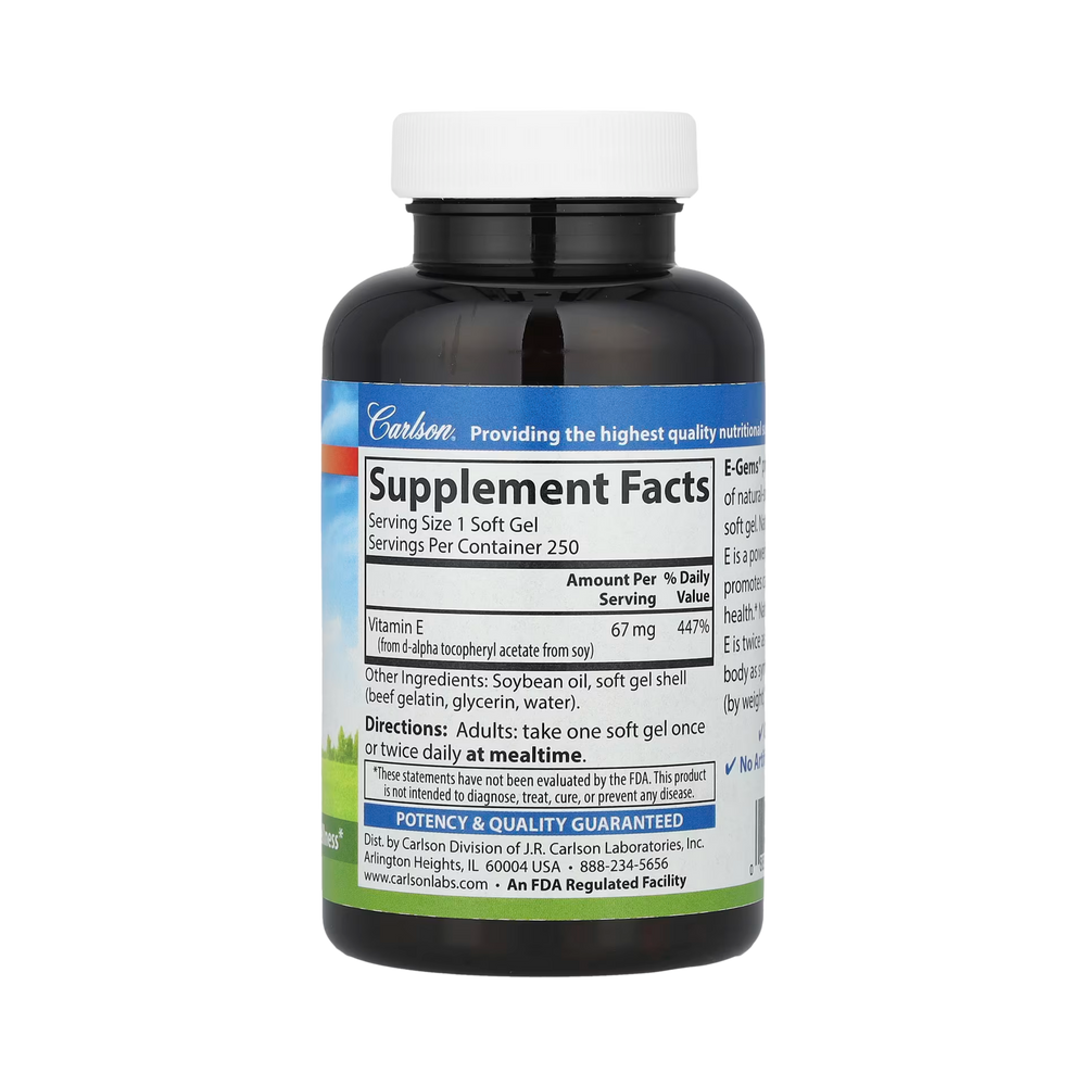 Vitamin E (as d-alpha tocopheryl acetate from soy) Amt Per Serving:100 IU % Daily Value :333%,,Other Ingredients: Sunflower oil, beef gelatin, glycerin, water.