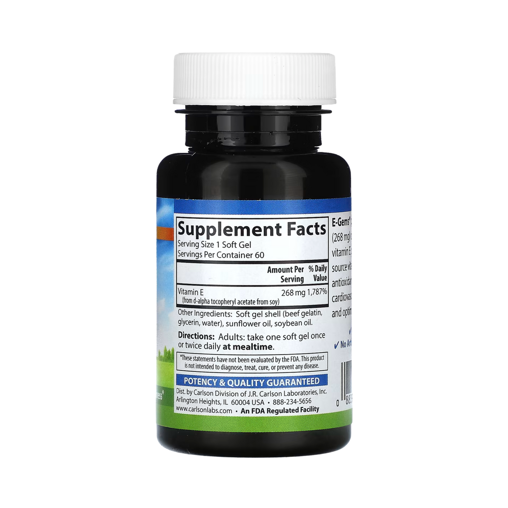 E-Gems® provide 400 IU (268 mg) of natural-source vitamin E per soft gel. Natural-source vitamin E is a powerful antioxidant that promotes cardiovascular system health and optimal wellness.