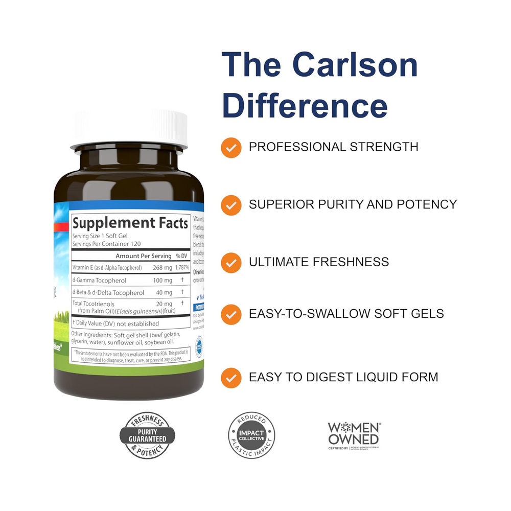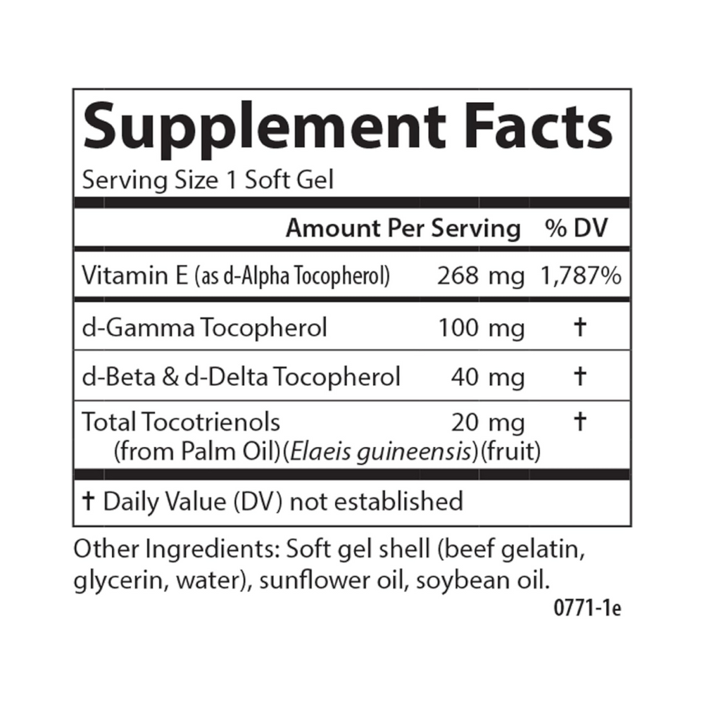 Vitamin E (as d-Alpha Tocopherol), d-Gamma Tocopherol, d-Beta & d-Delta Tocopherol, Total Tocotrienols