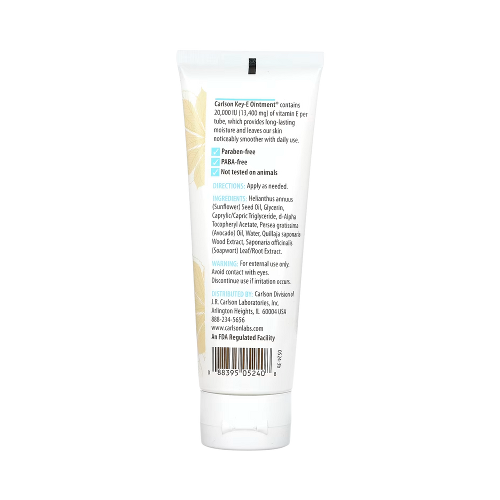 Carlson Key-E Ointment® contains 10,000 IU (6,700 mg) of vitamin E per tube, which provides long-lasting moisture and leaves our skin noticeably smoother with daily use.