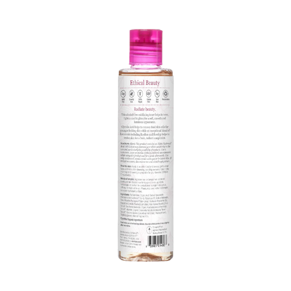 Unlock the secret to radiant skin with DERMA E Essentials Radiance Toner, a dermatologist-recommended daily toner designed to transform your skincare routine. This powerful formula combines the exfoliating properties of Glycolic Acid with the rejuvenating benefits of Rosehip Extract and the detoxifying power of Rooibos to deliver a comprehensive skincare solution.