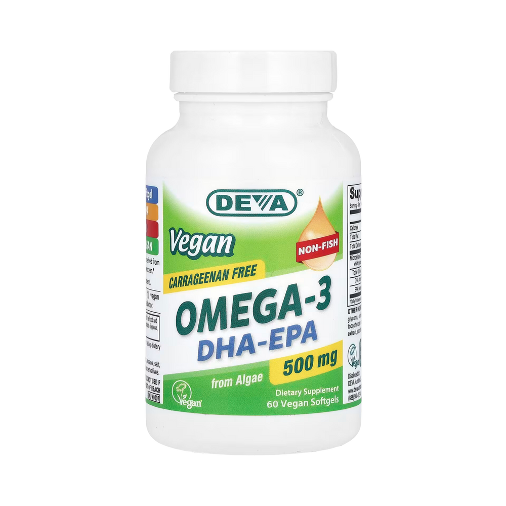 Deva, Vegan Omega-3 DHA-EPA, 500 Mg, 60 Vegan Softgels