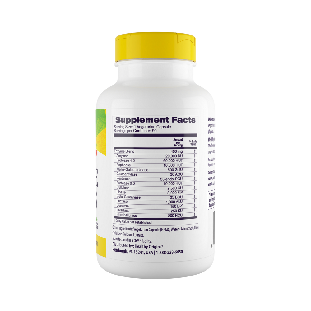 Healthy Origins Broad Spectrum Digestive Enzymes include 14 different enzymes to aid in the digestion and assimilation of sugars, grains, fats, carbohydrates, and proteins. Our product is developed in partnership with National Enzyme Company, a worldwide leader in enzyme research and development.