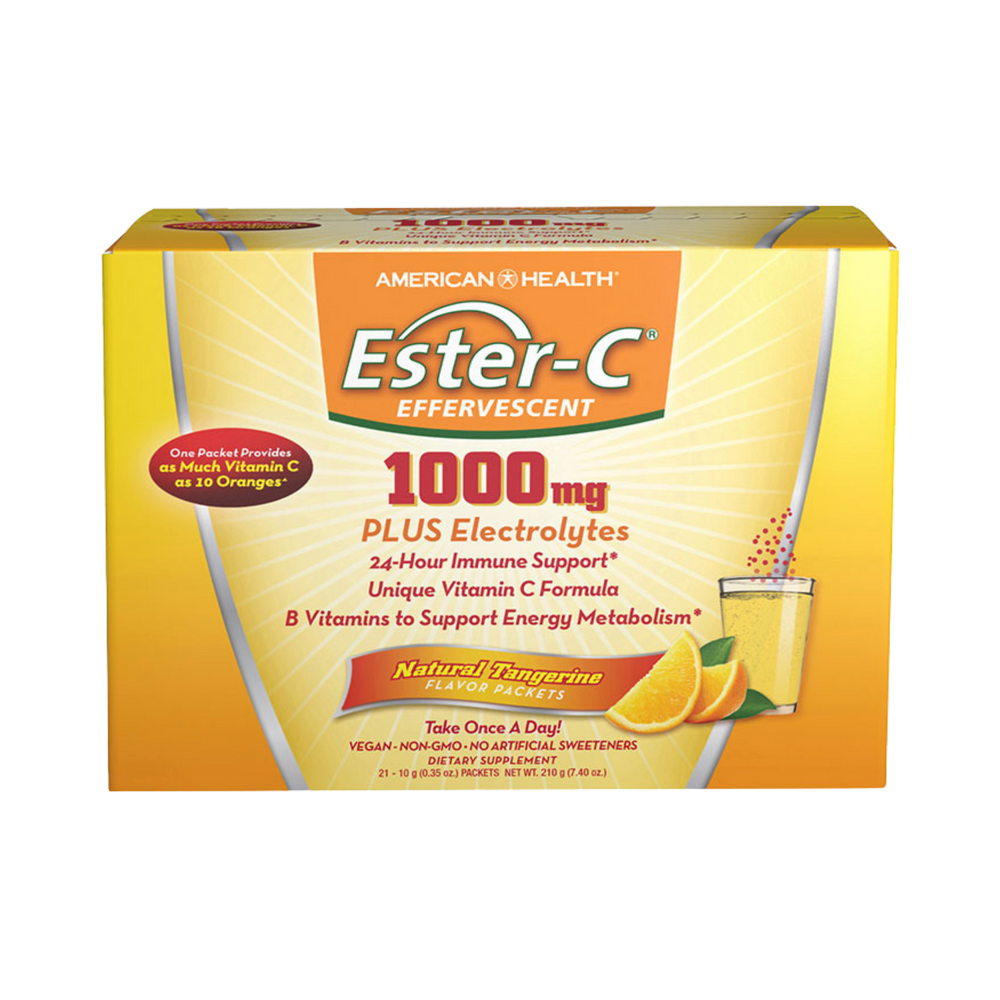 Unique Ester-C® increases levels of Vitamin C in the body – getting into white blood cells, an important part of your immune system. And, because Ester-C® absorbs into your system and stays there…you get 24-hour immune support…so once a day is all you need. Taken once a day, Ester-C® has your immune health covered. It supports circulation, is beneficial to joints and connective tissues, helps reduce the premature aging of cells, and forms the basis for healthy skin .Helping to neutralize free radicals, Ester-C® also aids in the nutritional absorption of iron and works with other nutrients to promote overall health. Along with essential vitamins, such as B-6 and B-12 to support energy metabolism and vital electrolytes to aid in metabolic hydration, Ester-C® Effervescent Formula has got you covered. Now more than ever, trust your immune health to Ester-C®.Ester-C® Effervescent Vitamin C Packets offer powerful nutrition in a delicious, natural lemo lime flavored formula. Just take one packet daily with 4-6 fl. oz. of water and you are good to go!