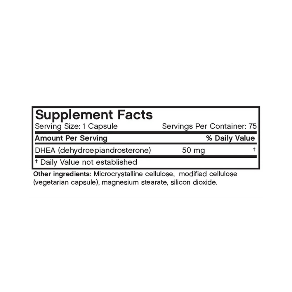 DHEA is a naturally-occurring hormone that your body produces in the adrenal gland. After it enters the bloodstream and travels through the body, it enters cells where DHEA produces other critical hormones like testosterone and estrogen. DHEA levels change throughout life. They peak in early adulthood and begin to fall as we age, which can cause hormonal imbalances and speed up aging. DHEA supplements have been shown to help fight against some of these challenges. Some research has indicated that it helps slow the process of aging, particularly in improving the appearance and youthfulness of the skin. It has also been shown to help support a healthy mood and improve bone density. Our hormonal balance supplements have 50mg of DHEA per capsule.