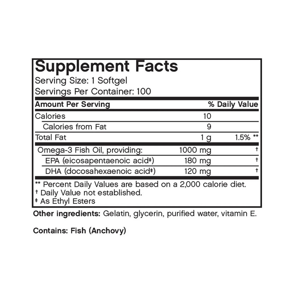 Futurebiotics Omega-3 Fish Oil supplies the Omega-3 fatty acids Eicosapentaenoic Acid (EPA) and Docosahexaenoic acid (DHA) and is derived from anchovies.