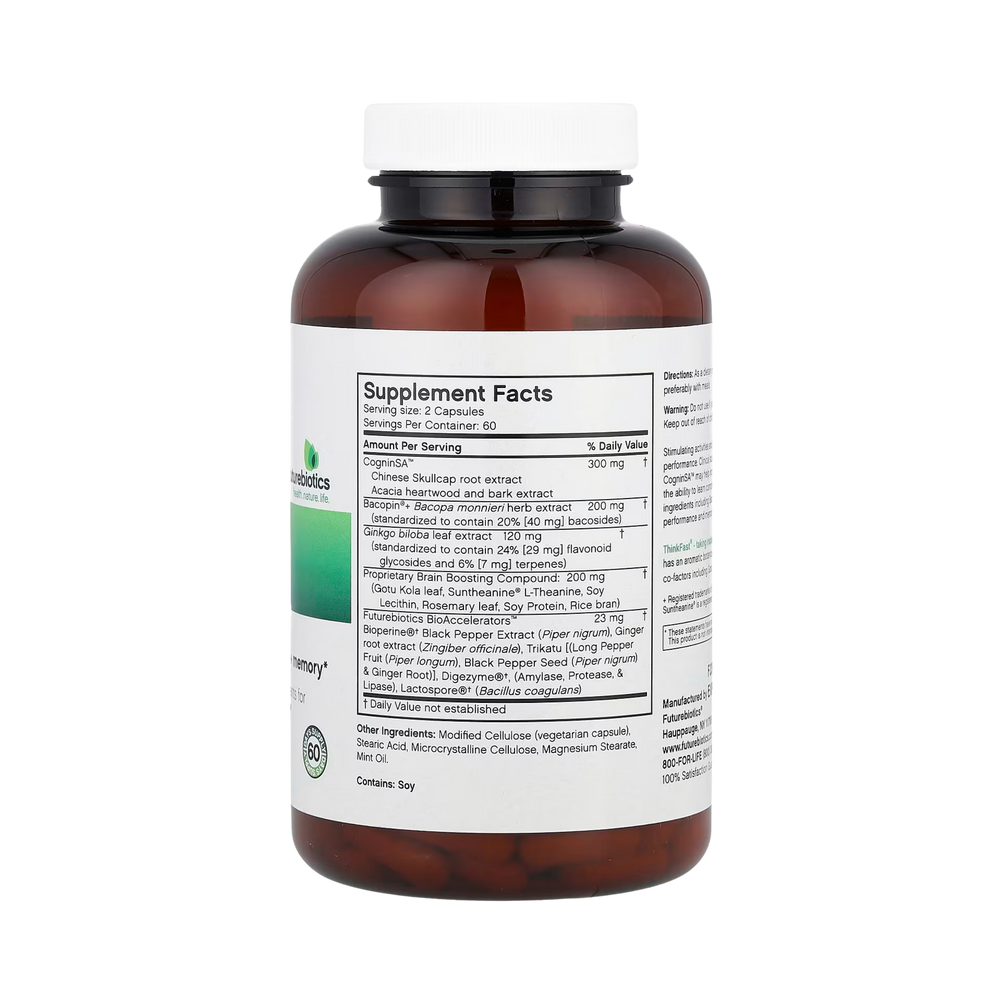 ThinkFast® - taking inspiration from Nature. This 100% vegetarian product has an aromatic botanical essence added, along with natural whole plant co-factors including Gotu Kola leaf, Soy Lecithin & Rosemary.