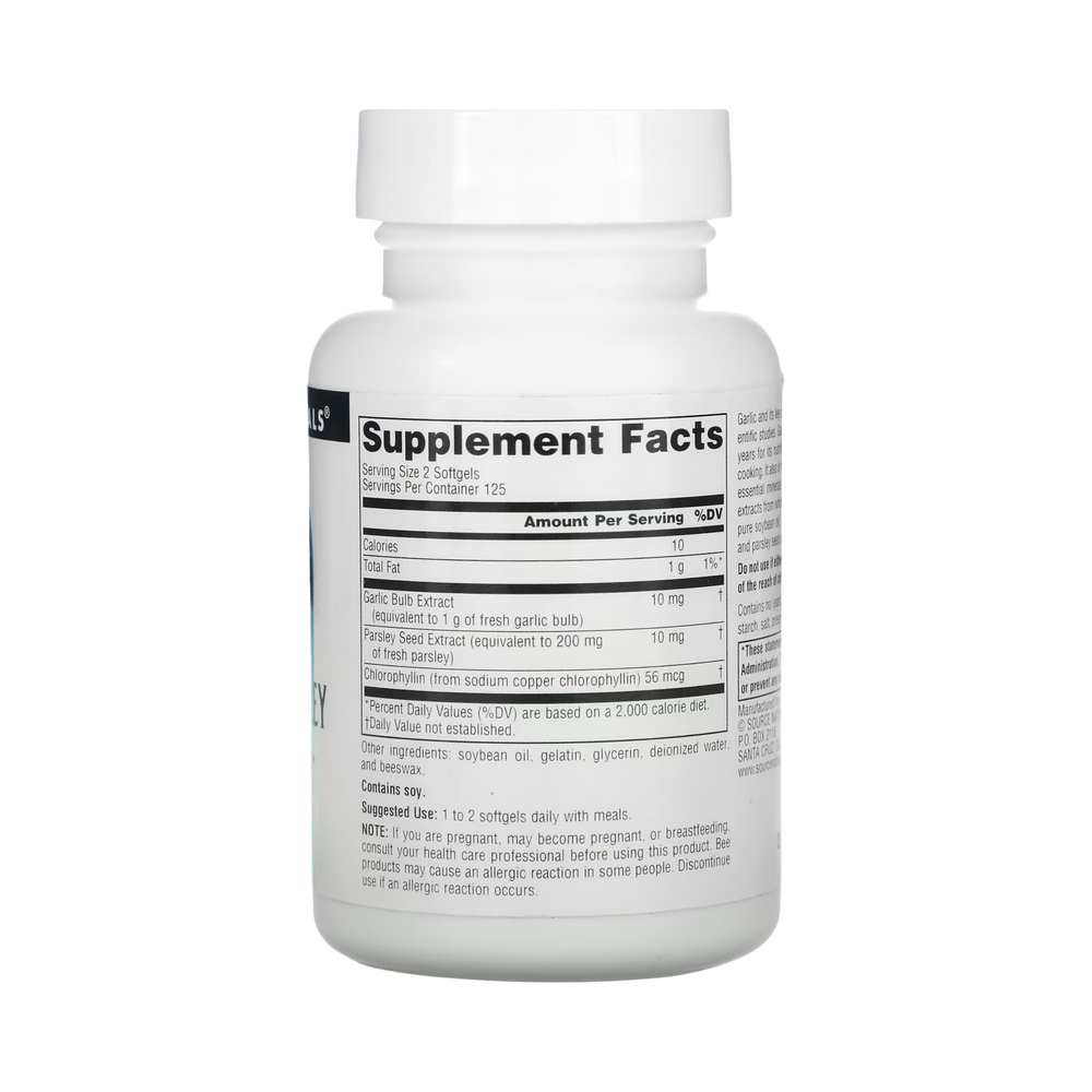 Garlic and its key constituents have been the subject of hundreds of scientific studies. Garlic has been used around the world for thousands of years for its nutritional value. Parsley is a favorite herb for salads, and cooking. It also is refreshing and soothing and contains easily assimilated essential minerals. Source Naturals Garlic & Parsley oil contains true oils of garlic and parsley seed, extracted from whole fresh garlic bulb and parsley seed, and suspended in pure soybean oil. It is a convenient way to receive the benefits of garlic and parsley seed in concentrated form, without the taste and odor.*