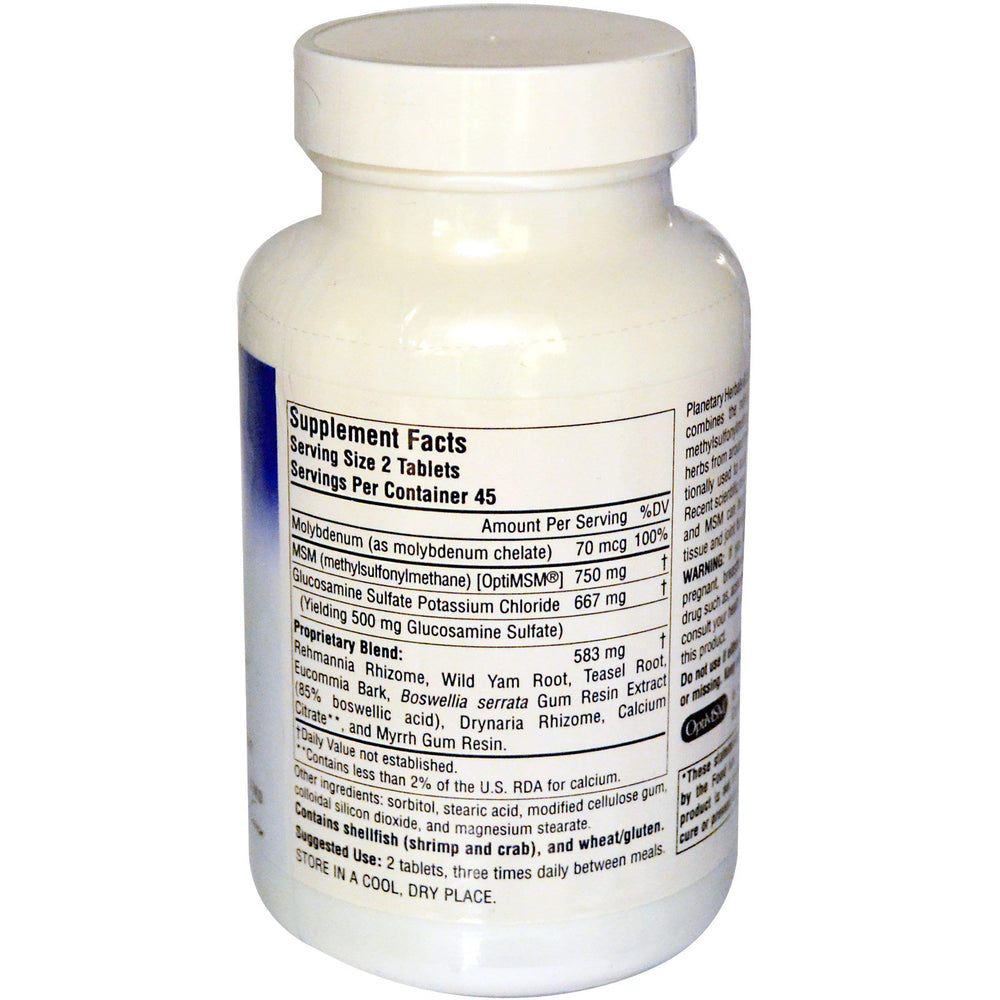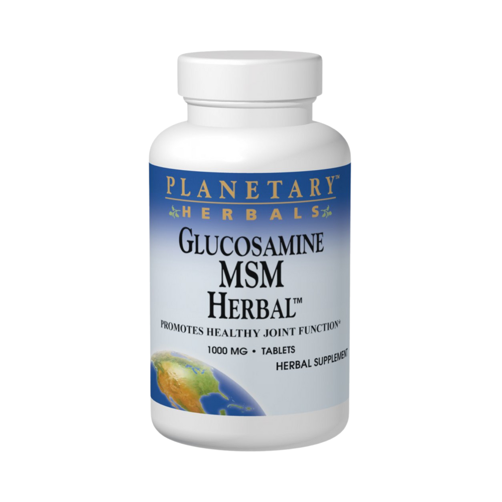 Planetary Herbals Glucosamine MSM Herbal™ combines the nutrients D-glucosamine sulfate, methylsulfonylmethane and molybdenum with herbs from around the world that have been traditionally used to support bone and joint function. Recent scientific research shows that glucosamine and MSM can help support healthy connective tissue and joint function.