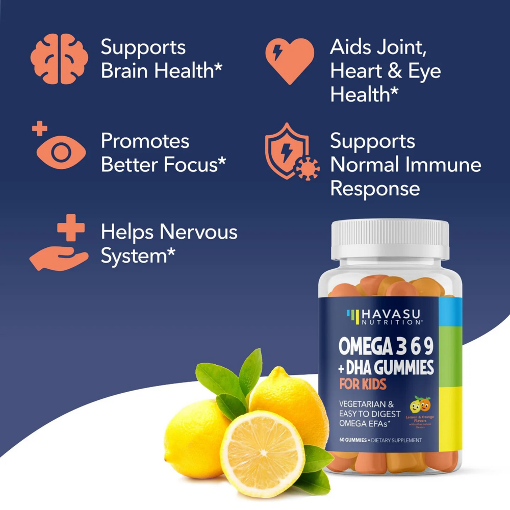 Havasu Nutrition, Omega Gummies for Kids, Lemon & Orange Flavors, 60 Gummies