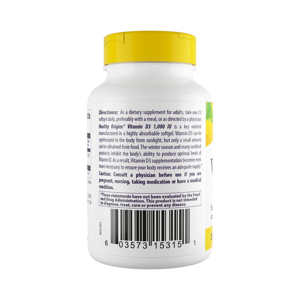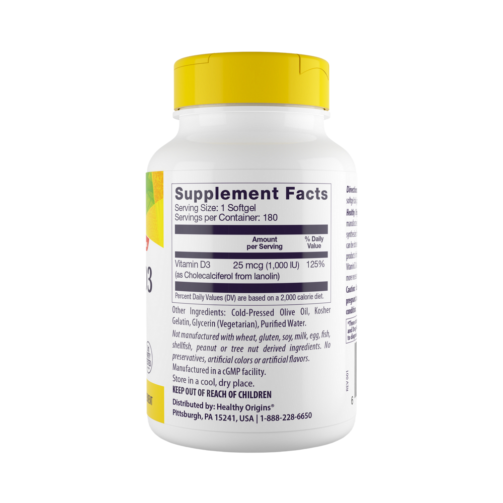 Healthy Origins, Vitamin DЗ Gels, 1000 IU, Lanolin, 180 Softgels