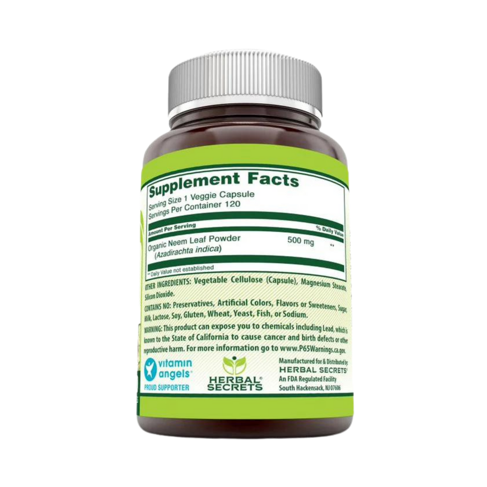 The Herbal Secrets Organic Neem Natural Dietary Supplement uses the antiseptics and antioxidants in the neem capsules to help clear out the digestive system. By doing so, your digestive system may become healthier which in turn may make digestion easier and may regulate your system more effectively.