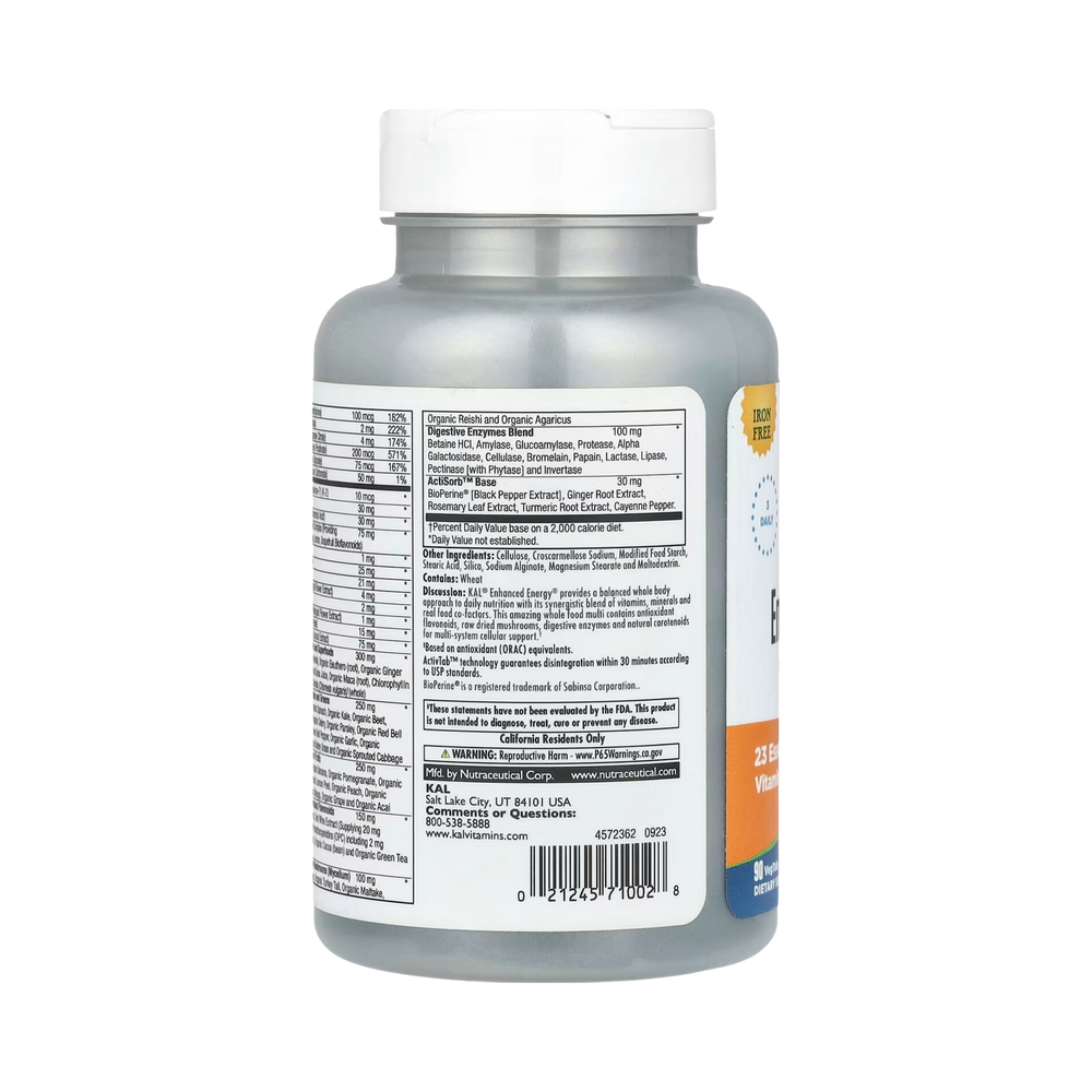 Discussion: KAL® Enhanced Energy provides a balanced whole body approach to daily nutrition with its synergistic blend of vitamins, minerals and real food co-factors. This amazing whole food multi contains antioxidant flavonoids, raw dried mushrooms, digestive enzymes and natural carotenoids for multi-system cellular support.