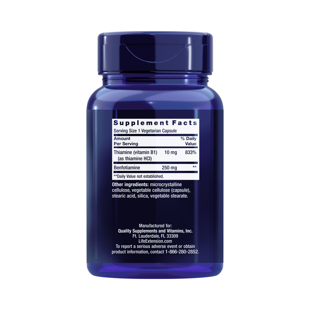 Mega Benfotiamine is formulated with 250 mg of benfotiamine and 10 mg of thiamine (vitamin B1) to support healthy blood sugar metabolism. It also helps protect your body against oxidative stress and glycation, a biochemical reaction that can contribute to a variety of age-related factors.