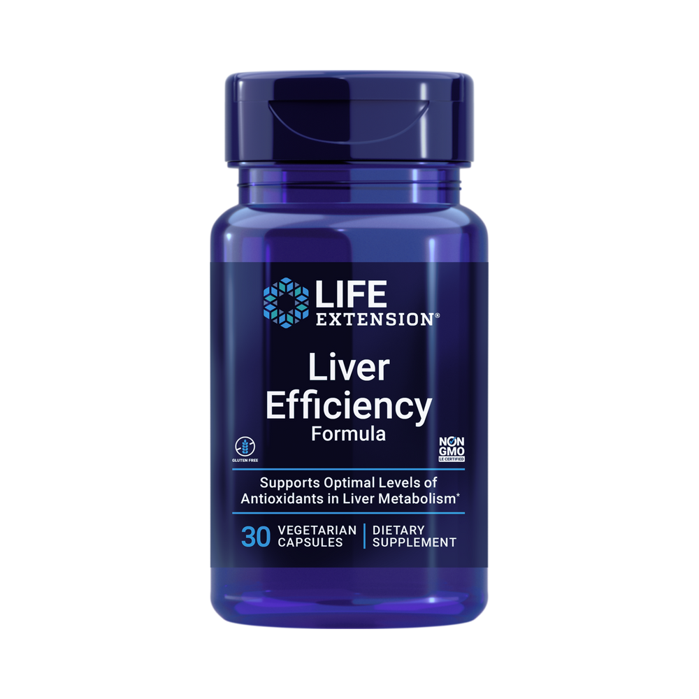 Liver Efficiency Formula helps support liver function by encouraging healthy mitochondrial energy output in liver cells and by helping to safeguard your liver against oxidative stress by encouraging the production of the body’s two most potent antioxidant compounds: glutathione and super oxide dismutase, or SOD.