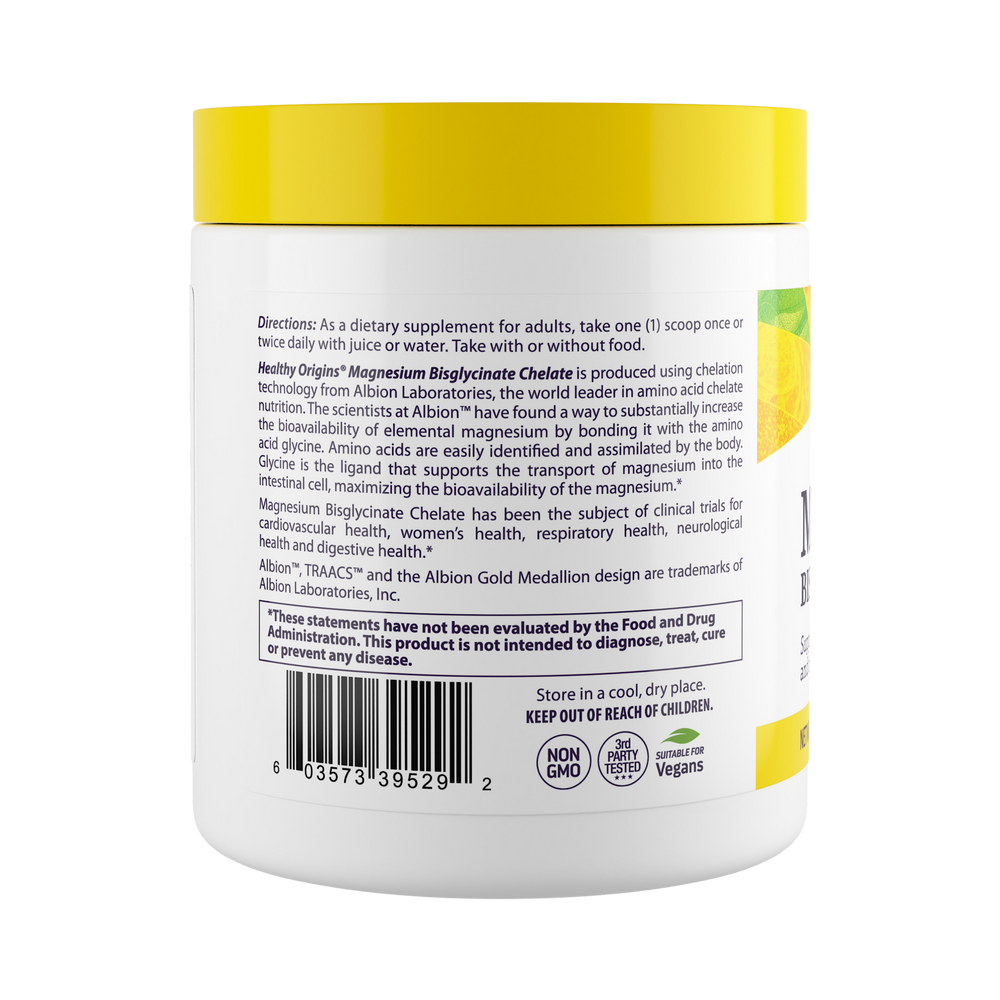Healthy Origins® Fully Reacted Magnesium Bisglycinate Chelate is developed in partnership with Albion Labs Inc., a leader in mineral research and development.