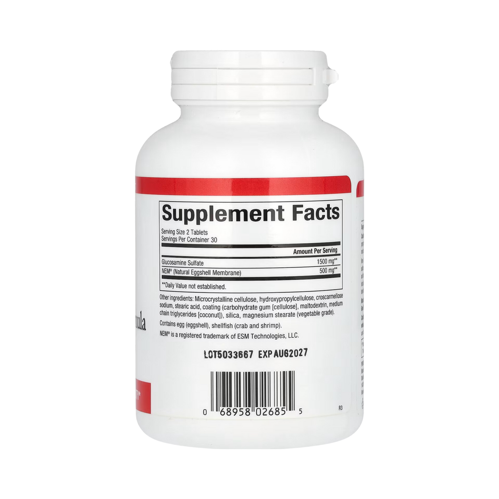 Knee & Joint Formula Contains NEM (Natural Eggshell Membrane) and glucosamine sulfate. NEM, made by a patented process, is clinically proven to promote joint comfort and flexibility in just 7 to 10 days. Composed of naturally occurring glycosaminoglycans including chondroitin and hyaluronic acid, NEM also contains collagen and other beneficial proteins.