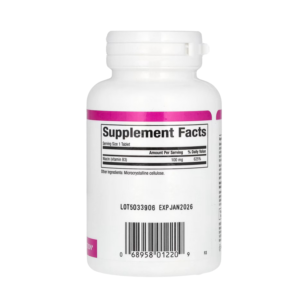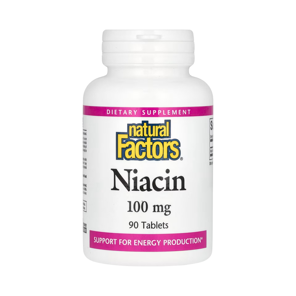Niacin (vitamin B3) is essential to the metabolism of carbohydrates, fats and proteins, which contributes to an increased energy production and normal nervous system function. It may also help regulate cholesterol levels already in normal range and support healthy adrenal gland function.