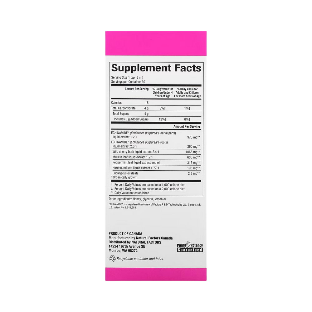 ECHINAMIDE® Active Support - a pleasant tasting, soothing syrup containing Echinamide and other herbs in a base of Echinacea honey.