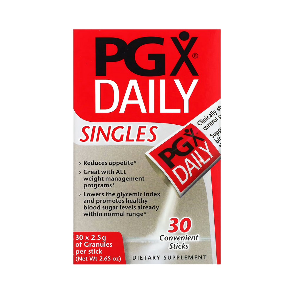 Mix 1 packet of PGX Daily® Singles (2.5 g) into 8 fl. oz (1 cup) of cold water and stir briskly. Take 1 to 2 times per day or as directed by a health professional. Take PGX DailyⓇ with or without food or with healthy snacks to greatly reduce appetite and curb food cravings.