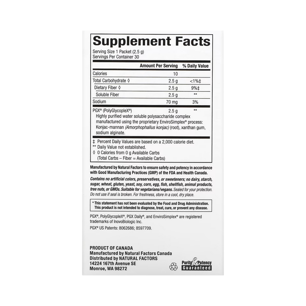 Consult your health professional before use if you are under 18 years of age or have any health concerns. If you are taking medication, take it one hour prior to or two hours after taking PGX®. As with any supplement, consult your health professional before use if you are pregnant, breastfeeding, or trying to conceive, or if you have a medical condition or anticipate a surgery. Keep out of the reach of children.