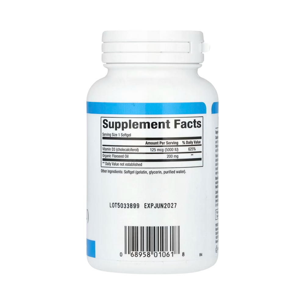 Vitamin D3 is essential for strong bones and teeth as it increases the body's absorption of calcium from food. Its role in regulating calcium levels also helps regulate the immune system and maintain healthy nerves and muscles. Vitamin D3 is carefully blended with organic flaxseed oil in an easy-to-swallow softgel.