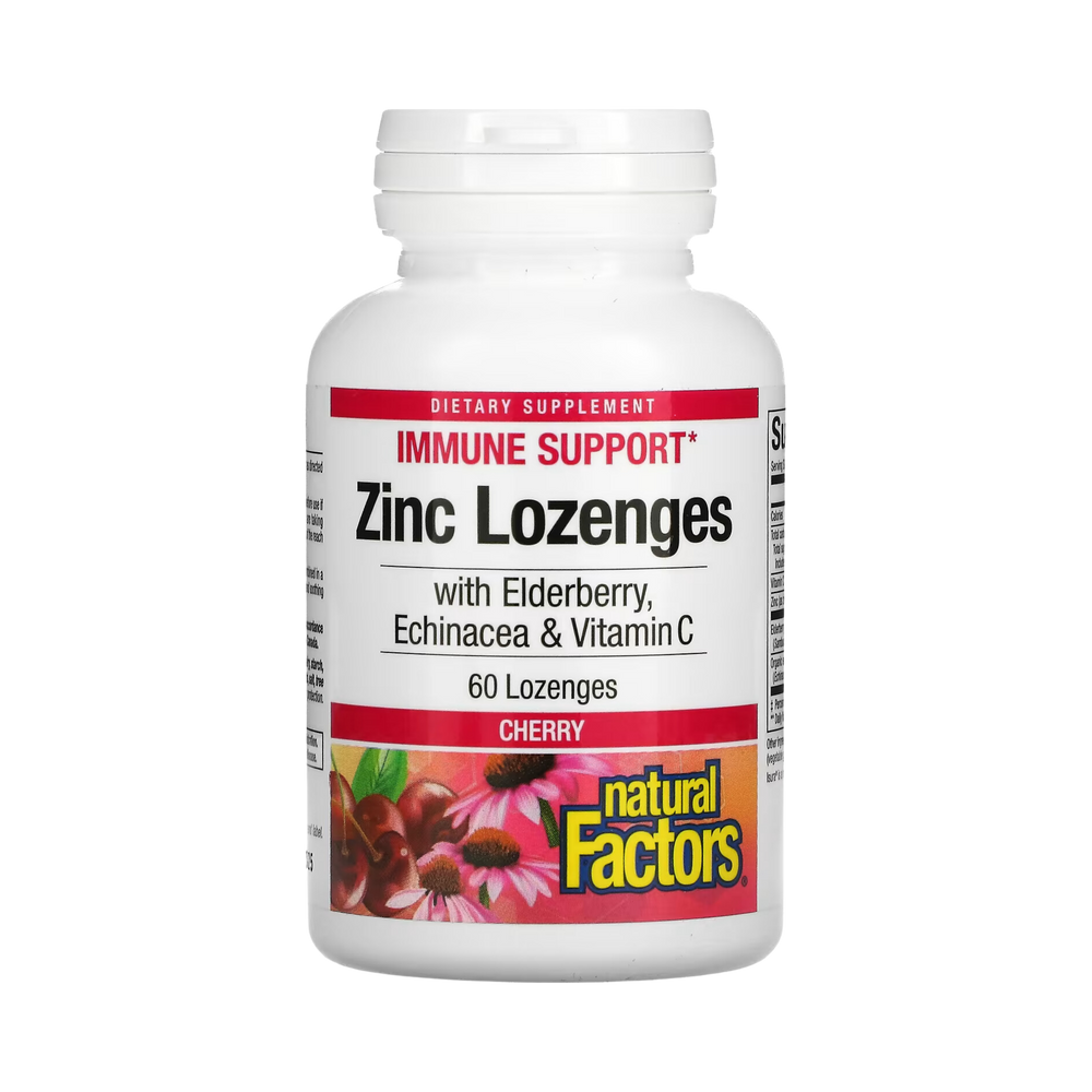 Zinc, elderberry, echinacea from Factors Farms, and vitamin C are combined in a delicious cherry-flavor lozenge to provide fast-acting immune support and soothing relief for your throat.
