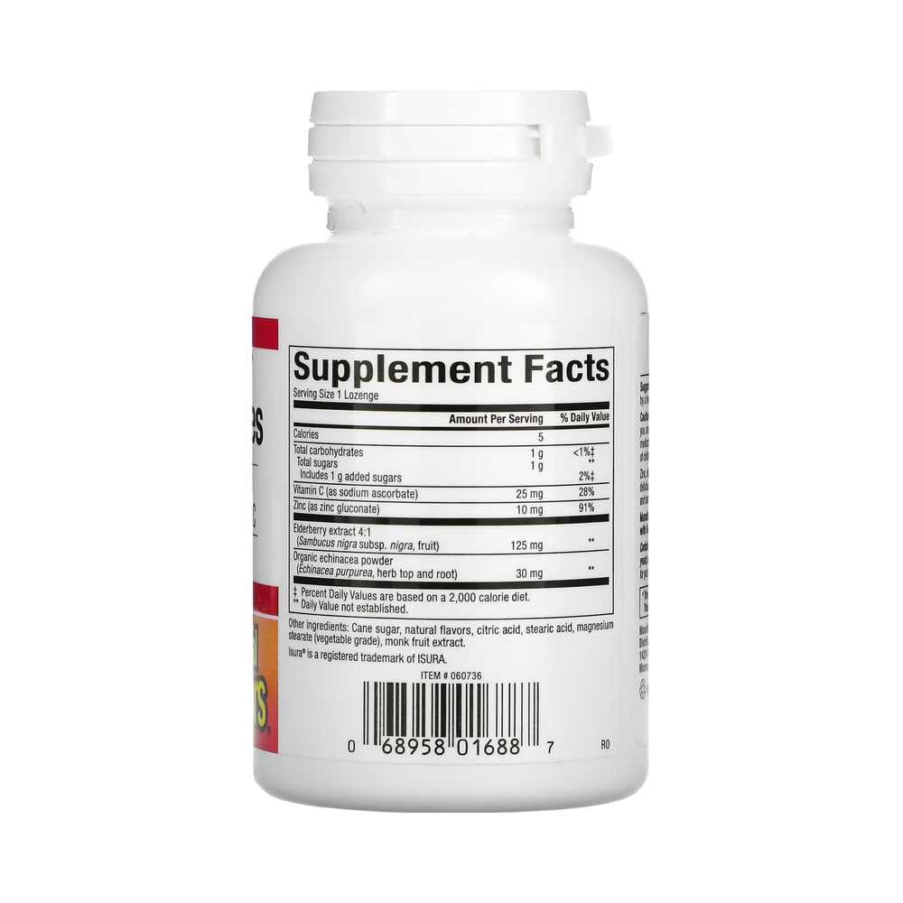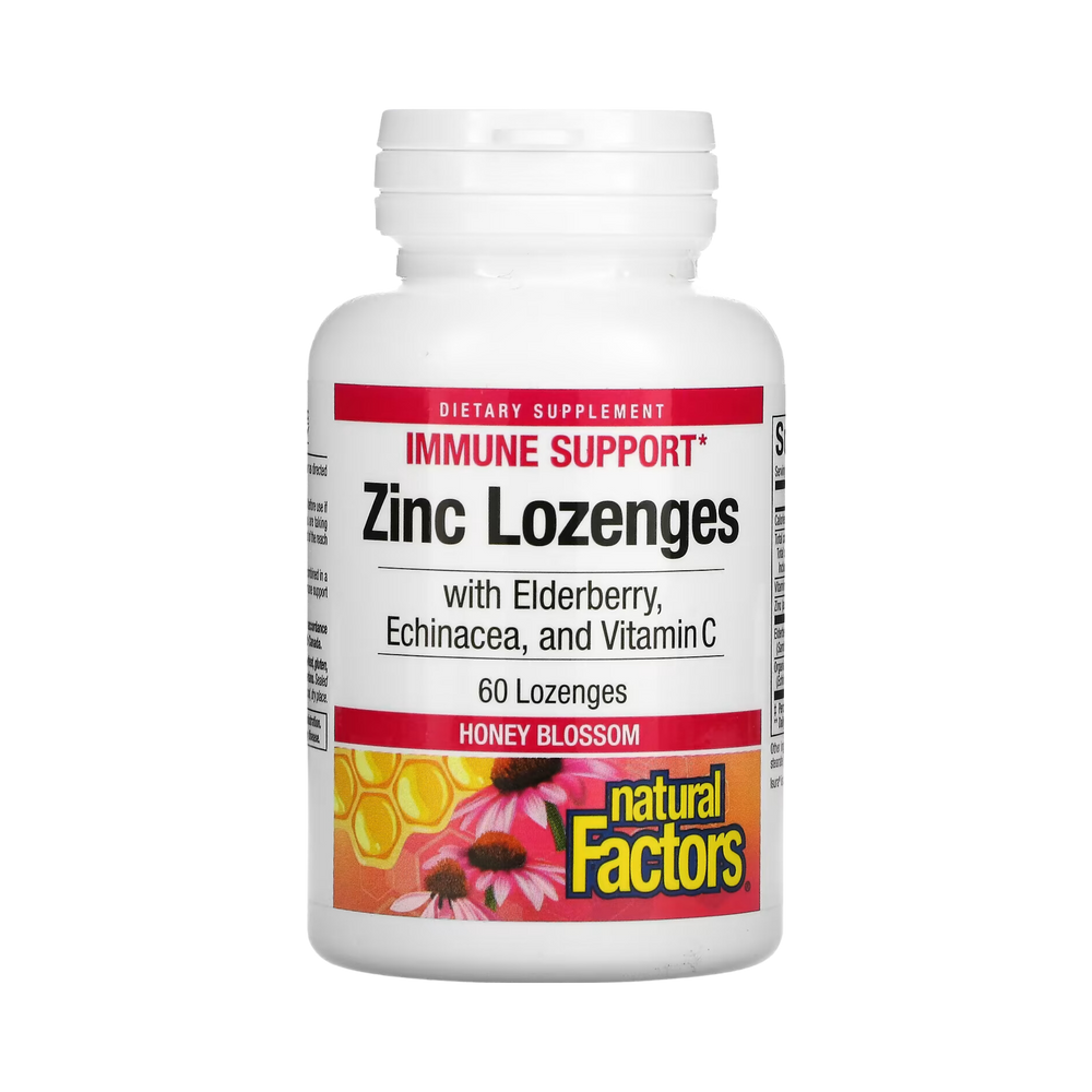 Zinc, elderberry, echinacea from Factors Farms, and vitamin C are combined in a delicious honey-blossom-flavor lozenge to provide fast-acting immune support and soothing relief for your throat.