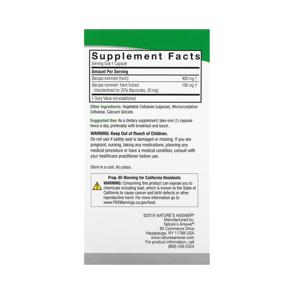 Bacopa monnieri Herb Extract (standardized for 20% Bacosides, 20 mg) 100 mg †