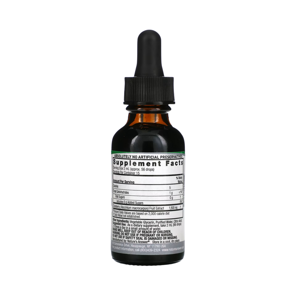 Nature’s Answer Alcohol Free Cranberry Extract is an exceptional way to help keep your urinary tact healthy.* Since it’s an extract, it’s absorbed faster than pills, capsules and softgels. Made from 10,000 mg of fresh cranberries, this highly concentrated extract gives you a full 1,500 mg of herb in each 2 ml serving.