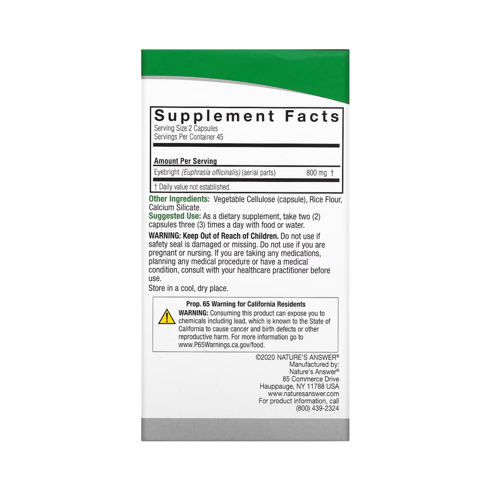 Eyebright (Euphrasia officinalis) (aerial parts) 800 mg †