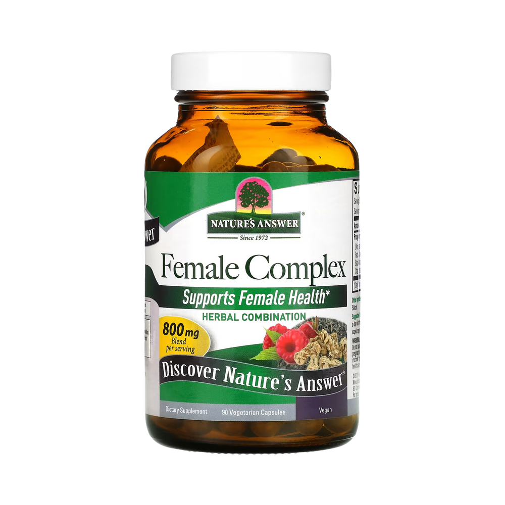 Nature’s Answer Female Complex has a blend of ingredients to promote Female Daily Health. These Herbs include, Dong Quai, Red Raspberry, Black Cohosh, and Chaste Tree. This powerful blend is 800 mg in Strength.