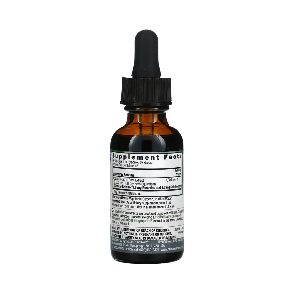 Nature’s Answer Rhodiola Root Extract is a unique super concentrated high quality extract. It is excellent for helping the body adapt to stressful situations, whether it’s extreme cold or heat, loud noise, fear, or anything else that puts stress on the mind or body.* Nature’s Answer Rhodiola Root Extract improves strength, energy, stamina, endurance, and improves mental clarity.