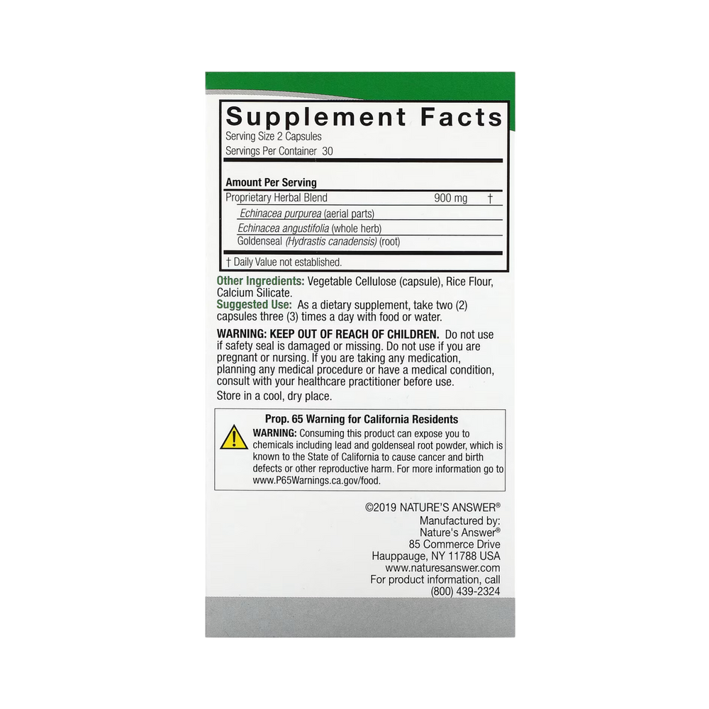 Nature's Answer - Echinacea & Goldenseal, 60 Vegetarian Capsules