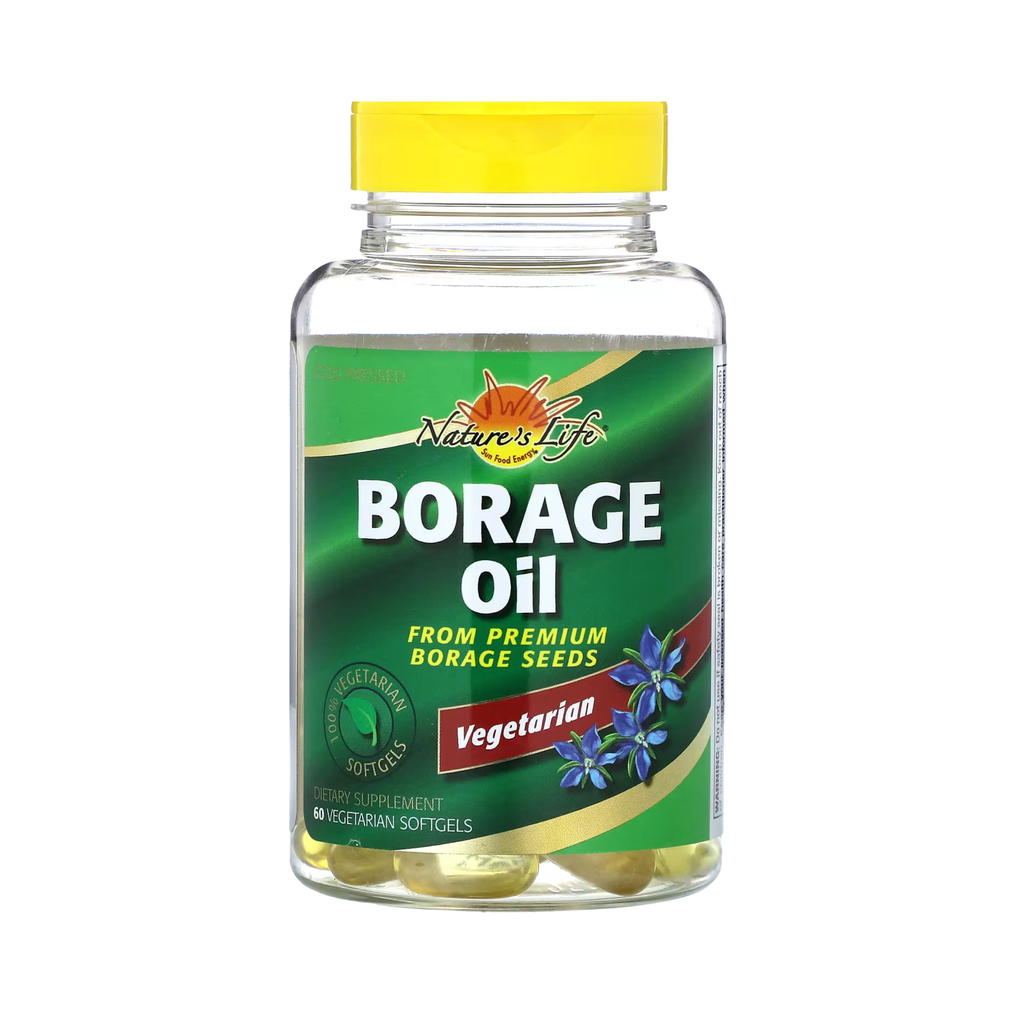 Organic borage seed oil, gamma linolenic acid, linoleic Acid (Omega-6), oleic Acid (Omega-9), non-GMO modified corn starch, carageenan, sorbitol, glycerin and water (vegetarian softgel).