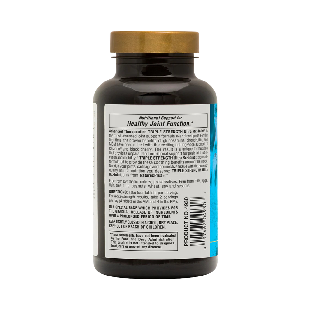 Advanced Therapeutics Triple Strength Ultra Rx-Joint® is the most advanced joint support formula ever developed! For the first time, the proven benefits of glucosamine, chondroitin, and MSM have been united with the exciting cutting-edge support of Celadrin® and black cherry. The result is a unique formulation that provides unparalleled nutritional support for peak joint lubrication and mobility. Triple Strength Ultra Rx-Joint is specially formulated to provide these soothing benefits around the clock. Nourish your joints, cartilage and connective tissue with the superior quality natural nutrition you deserve: Triple Strength Ultra Rx-Joint, only from Nature's Plus®!