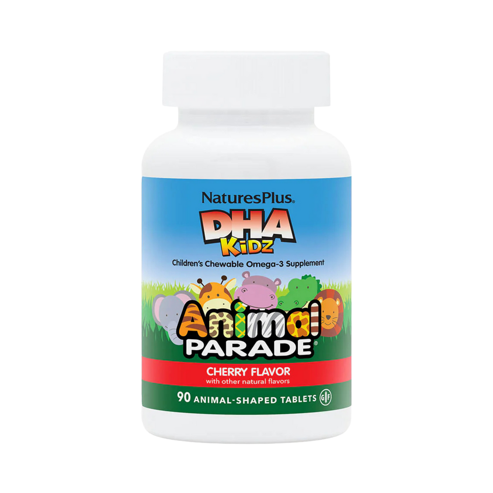 Essential Fatty Acid? If you're a kid, this and Omega-3 are probably not on your radar. And since the most abundant food source of Omega-3 is fish, which children dislike, many kids don't get enough of this important brain nutrient! DHA, a key component of the Omega-3 group, is linked to healthy brain function and proper growth and development. Animal Parade® DHA Kidz was created to provide DHA, along with crucial minerals plus vitamins A, D and E - that assist with absorption and utilization. Kids love these delicious, wholesome, animal-shaped, cherry-flavored chewables!