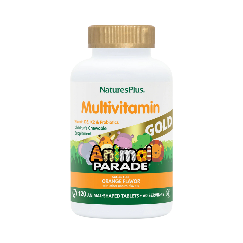 NaturesPlus, Animal Parade Gold, Children's Chewable Multivitamin, Orange, 120 Animal-Shaped Tablets