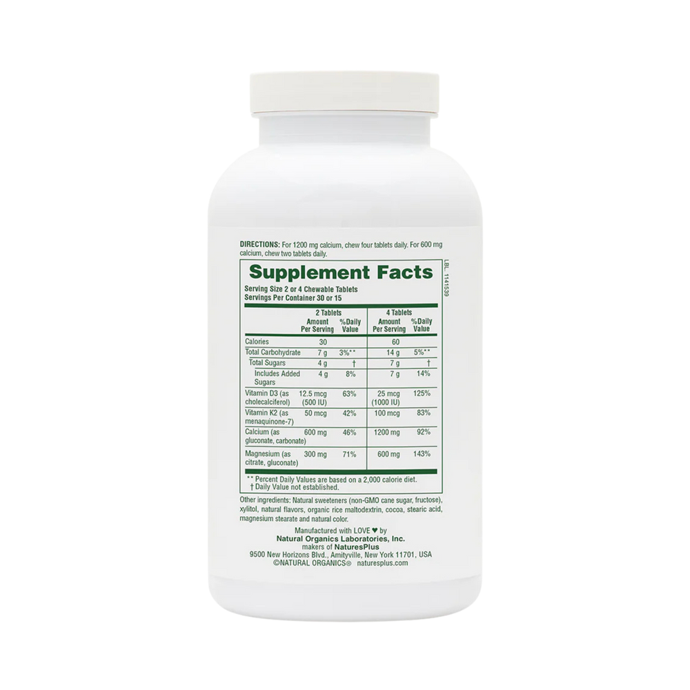 For 1,200 mg calcium, chew four tablets daily. For 600 mg calcium, chew two tablets daily.
