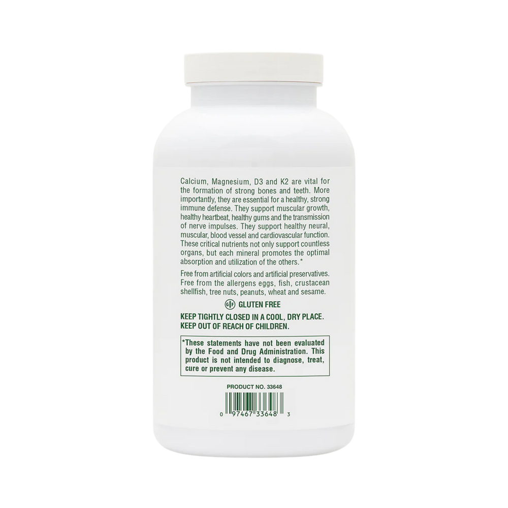 Calcium, Magnesium, D3 and K2 are vital for the formation of strong bones and teeth. More importantly, they are essential for a healthy, strong immune defense. They support muscular growth, healthy heartbeat, healthy gums and the transmission of nerve impulses. They support healthy neural, muscular, blood vessel and cardiovascular function. These critical nutrients not only support countless organs, but each mineral promotes the optimal absorption and utilization of the others.