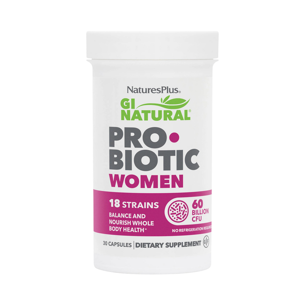 NaturesPlus GI Natural Probiotic Women provides 60 billion live probiotic bacteria of healthful, clinically backed probiotics shown to promote feminine reproductive system health in clinical studies. Designed for optimal benefits, this uniquely formulated women's probiotic includes gastrointestinal and whole body health-boosting features.